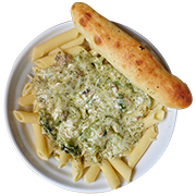 Alfredo Sauce, Chopped Garlic, Shredded Mozzarella, Chicken Dressed With Parmesan Cheese