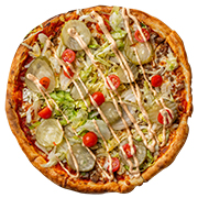 Red Sauce, Ground Beef, American Cheese Dressed With Pickles, Shrreded Ice-berg, Tomatoes, Burger Sauce