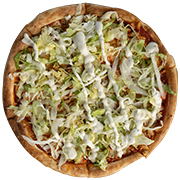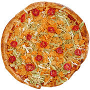 Red Sauce, Shredded Mozzarella, Chicken, Buffalo Hot Sauce, Dressed With Shredded Ice-berg, Blue Cheese Dressing