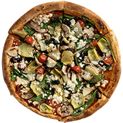 Red Sauce, Spinach, Tomatoes, Mushrooms, Artichokes, Olives, Feta