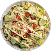 Shredded Ice-berg, Asiago Cheese, Ham, Tomatoes, Cucumber, Ranch Dressing