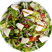 Mixed Greens, Fresh Mozzarella, Tomatoes, Red Onion, Green Peppers, Balsamic Dressing